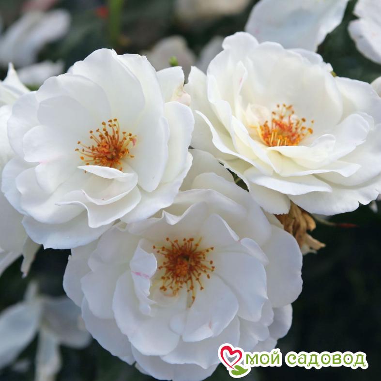 Роза Вайсе Вольке Этот сорт стремительно завоевал признание цветоводов. Выведен он в 1993 году в Германии. Роза Вайсе Вольке характеризуется длительным периодом цветения, нетребовательностью к условиям произрастания и прочими положительными характеристиками. Именно благодаря им растение стремится купить практически каждый розовод. Ботаническое описание Рассматриваемая цветочная культура выращивается как крупный шраб или невысокий клаймбер. Цветки чисто-белой окраски, полумахровые, с пучком золотистых тычинок. Обычно они собраны в кистевидные соцветия по 3 – 10 штук. Бутоны формируются на макушках побегов и на коротких боковых ветках (на прошлогодней древесине). Эта особенность обуславливает обильное цветение. Побеги крепкие, толстые и длинные. Листья крупные, тёмно-зелёные, с блестящей поверхностью. Высота взрослых саженцев зависит от региона, в котором они выращиваются. Например, в Австралии кусты достигают 5 м, а в Германии – не более 2 м. Применение Роза Вайсе Вольке так интенсивно разрастается, что за короткий период времени формирует плотную живую изгородь. Она достойно украсит любой участок. Однако нужно учитывать один момент: соцветия настолько обильные, что побеги под их весом могут поникать. Следовательно, потребуется посредством обрезки сформировать жёсткий каркас. В целом сорт гармонично смотрится не только в линейных, но и в групповых и сольных посадках. Агротехника Для посадки на участке лучше купить рассаду роз, выращенную в контейнерах. Она быстрее приживается на новом месте. В среднем на 1 м2 площади понадобится 3 – 4 кустика. Размещать их рекомендуется на хорошо освещённом участке, защищённом от сильных порывов ветра и холодных сквозняков. Желательно, чтобы клумба находилась на возвышенности, с глубоким залеганием почвенных вод. Земля предпочтительна рыхлая, суглинистая, с низким уровнем кислотности. Если она истощена, во время перекопки вносят перегной, золу и компост. Вайсе Вольке – неприхотливый шраб. Тем не менее, за растением нужно правильно ухаживать. Саженцы любят обильный полив, а также сезонные подкормки. Если лето жаркое и засушливое, то розы нужно поливать не меньше 1 раза с перерывом в 7 дней. Проводить процедуру слишком часто не желательно – это приводит к увяданию рассады. Также этот сорт один из самых устойчивых к заморозкам. Но молодые кустики всё же надо укрывать на зиму. В южных территориях можно окучить их почвой, взятой из междурядий. Если температура воздуха ещё больше снизится, достаточно подсыпать древесных опилок. В регионах с суровым зимним периодом помимо вышеописанных мер используют сухую листву или еловый лапник. В отдельные годы сорт Вайсе Вольке подвергается поражению чёрной пятнистости. Предотвратить развитие грибковой инфекции поможет профилактическая обработка медным купоросом (3% раствор). Проводить её нужно весной. А вот осенью в ход идёт 1% раствор железного купороса. Из вредителей розу атакует тля. Если насекомых мало, их можно собрать вручную. При массовом нашествии вредителя не обойтись без опрыскивания химическими препаратами (например, Карбофосом). Из народных средств хороший результат показывает раствор, приготовленный из воды и мыльной стружки. Преимущества розы Вайсе Вольке Среди многочисленных положительных качеств сорта выделяют следующие: рассада не